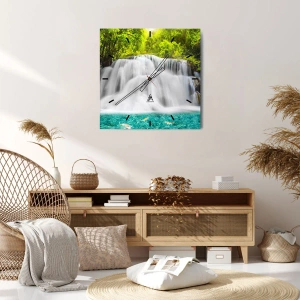 Orologio da parete - Orologio in Vetro - Cascata spumeggiante dal verde all'azzurro - 30x30 cm