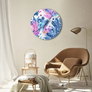 Orologio da parete - Orologio in Vetro - Pennacchi in rosa e blu - 40x40 cm