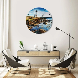 L'orologio è realizzato con vetro dello spessore di 4 mm. La tecnologia di realizzazione dell'orologio è conforme alla classe di resistenza 2B2 secondo la norma PN-EN 12600:2004, che garantisce resistenza agli urti. L'orologio su vetro è pronto per essere appeso: possiede un punto di sospensione metallico fissato sul retro dell'orologio e un distanziatore in schiuma che assicura la distanza uniforme dell'orologio dalla parete. L'orologio possiede un meccanismo silenzioso alimentato con una batteria da 1,5V, di tipo AA (la batteria non è inclusa nel completo).