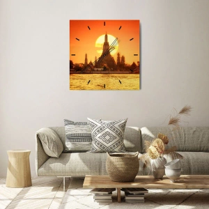 Orologio da parete - Orologio in Vetro - Tramonto sul tempio con riflesso nell'acqua - 30x30cm - Verso il sole, sempre verso il sole - Decorazione murale moderna per soggiorno e camera da letto ARTTOR