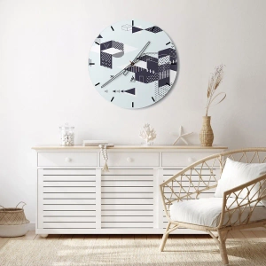 Orologio da parete - Orologio in Vetro - Grafica geometrica moderna nei toni del bianco e del blu navy - 30x30cm - La matematica nell'anima - Decorazione murale moderna per soggiorno e camera da letto ARTTOR