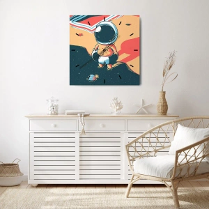 Orologio da parete - Orologio in Vetro - Divertente astronauta sulla spiaggia con elementi spaziali sullo sfondo - 30x30cm - Da un'altra prospettiva - Decorazione murale moderna per soggiorno e camera da letto ARTTOR