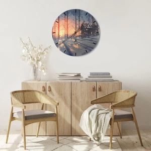 - Un orologio da parete raffigurante una baita nel bosco illuminata dal sole al tramonto. Perfetto per gli amanti degli interni accoglienti e dei paesaggi pittoreschi, porta pace e armonia in qualsiasi spazio.