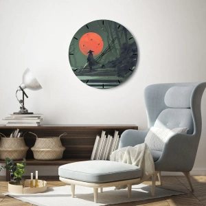 Orologio da parete - Orologio in Vetro - Un guerriero solitario con una spada sullo sfondo di una luna rossa in una foresta oscura. - 30x30cm - Il guerriero della luna rossa - Decorazione murale moderna per soggiorno e camera da letto ARTTOR