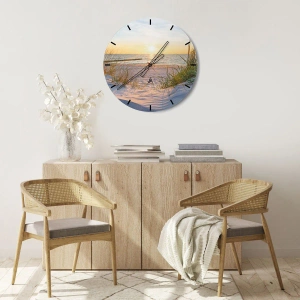Orologio da parete - Orologio in Vetro - Rumore del mare, uccelli che cantano, spiaggia selvatica tra i cespugli... - 40x40 cm