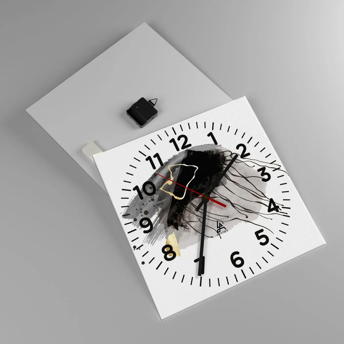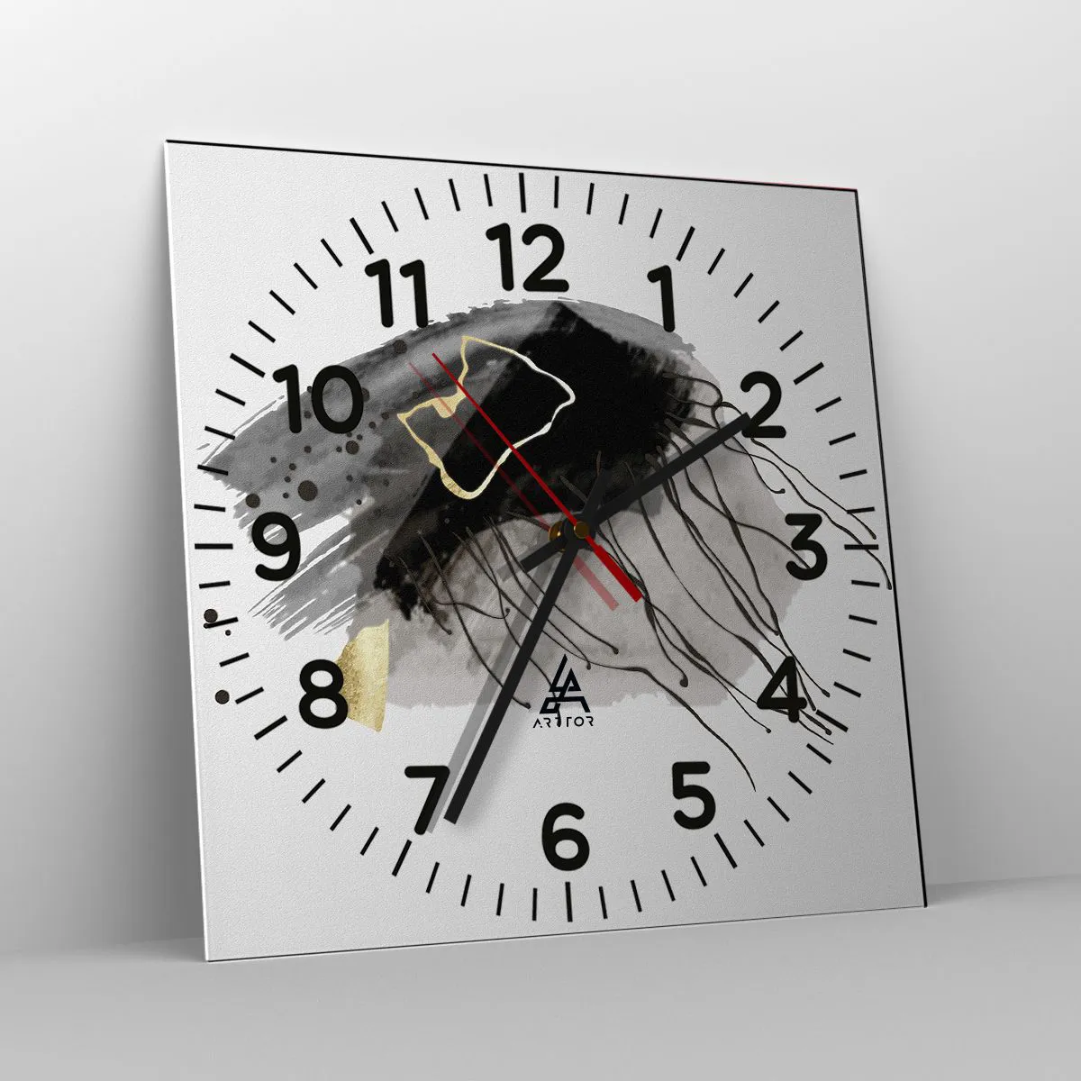 Orologio da parete - Orologio in Vetro - In nero e in oro - 40x40 cm