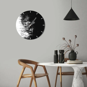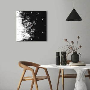 L'orologio è realizzato con vetro dello spessore di 4 mm. La tecnologia di realizzazione dell'orologio è conforme alla classe di resistenza 2B2 secondo la norma PN-EN 12600:2004, che garantisce resistenza agli urti. L'orologio su vetro è pronto per essere appeso: possiede un punto di sospensione metallico fissato sul retro dell'orologio e un distanziatore in schiuma che assicura la distanza uniforme dell'orologio dalla parete. L'orologio possiede un meccanismo silenzioso alimentato con una batteria da 1,5V, di tipo AA (la batteria non è inclusa nel completo).