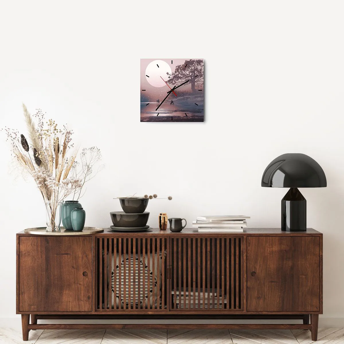 Orologio da parete - Orologio in Vetro - Scena romantica con la luna e un albero in riva all'acqua - 30x30cm - Meraviglie della notte - Decorazione murale moderna per soggiorno e camera da letto ARTTOR
