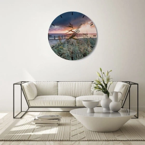 L'orologio è realizzato con vetro dello spessore di 4 mm. La tecnologia di realizzazione dell'orologio è conforme alla classe di resistenza 2B2 secondo la norma PN-EN 12600:2004, che garantisce resistenza agli urti. L'orologio su vetro è pronto per essere appeso: possiede un punto di sospensione metallico fissato sul retro dell'orologio e un distanziatore in schiuma che assicura la distanza uniforme dell'orologio dalla parete. L'orologio possiede un meccanismo silenzioso alimentato con una batteria da 1,5V, di tipo AA (la batteria non è inclusa nel completo).