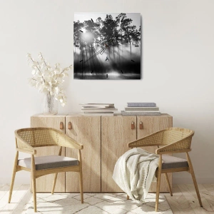 Orologio da parete - Orologio in Vetro - Foresta bianca e nera nella nebbia mattutina - 30x30cm - Sole irrefrenabile - Decorazione murale moderna per soggiorno e camera da letto ARTTOR
