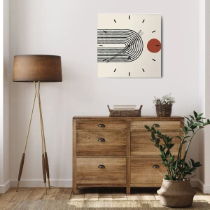 Orologio da parete - Orologio in Vetro - Moderno motivo astratto con linee e un cerchio rosso - 30x30cm - Magnetismo di forme e colori - Decorazione murale moderna per soggiorno e camera da letto ARTTOR