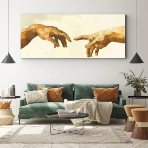Quadro su tela - Stampe su Tela - Mani geometriche che si protendono l'una verso l'altra su uno sfondo chiaro - 120x50cm - Geometria divina - Decorazione murale moderna per soggiorno e camera da letto ARTTOR