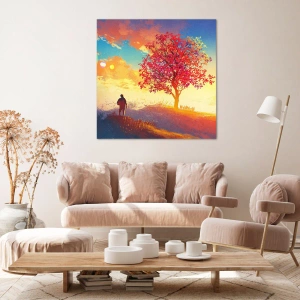 Quadro su tela - Stampe su Tela - Una figura su una collina accanto a un albero colorato alla luce del sole al tramonto - 120x80cm - Pellegrino alla meta - Decorazione murale moderna per soggiorno e camera da letto ARTTOR
