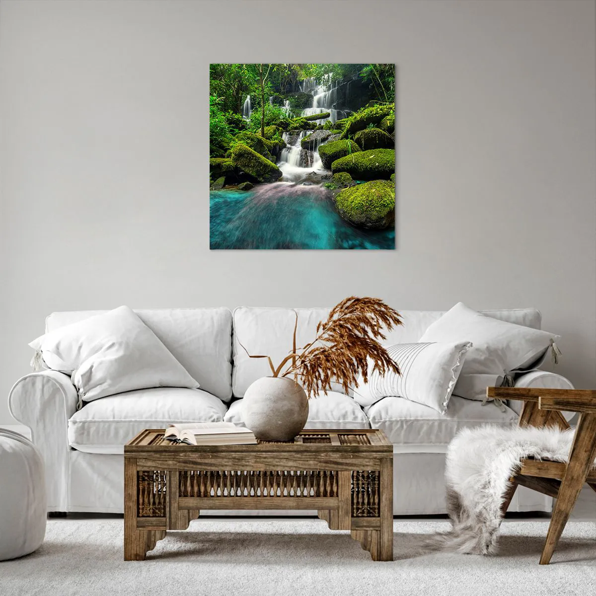 Quadro su tela - Stampe su Tela - Turchese, zaffiro e argento liquido - 60x60 cm