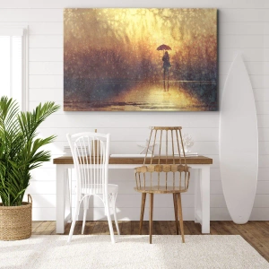 Quadro su tela - Stampe su Tela - Una figura con un ombrello in un paesaggio nebbioso pieno di riflessi - 140x50cm - Sento che qualcuno mi guarda - Decorazione murale moderna per soggiorno e camera da letto ARTTOR