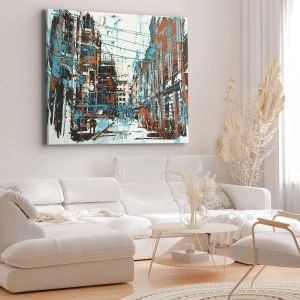 Quadro su tela - Stampe su Tela - Un paesaggio urbano nei toni del blu e dell'arancione - 70x50cm - Percorso cittadino consueto - Decorazione murale moderna per soggiorno e camera da letto ARTTOR