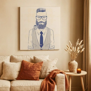 Quadro su tela - Stampe su Tela - Uomo stilizzato con barba, pipa e occhiali - 120x80cm - Allegro, maschile e alla moda - Decorazione murale moderna per soggiorno e camera da letto ARTTOR