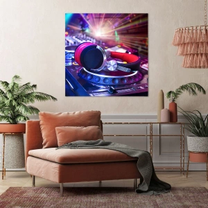 Quadro su tela - Stampe su Tela - Cuffie da DJ su una console illuminata dai riflettori a una festa - 70x100cm - Sarà fantastico - Decorazione murale moderna per soggiorno e camera da letto ARTTOR