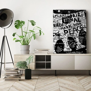 Quadro su tela - Stampe su Tela - Grafica in bianco e nero con motivi graffiti - 50x70cm - Il ricco mondo della strada - Decorazione murale moderna per soggiorno e camera da letto ARTTOR