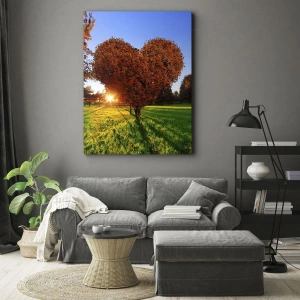Quadro su tela - Stampe su Tela - Un albero a forma di cuore in uno scenario autunnale - 50x70cm - Come non amare l'autunno - Decorazione murale moderna per soggiorno e camera da letto ARTTOR