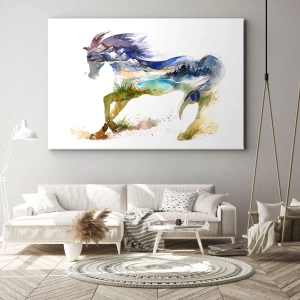 Quadro su tela - Stampe su Tela - Acquerello di un cavallo con un paesaggio montano in silhouette - 80x120cm - Direttamente dal prato al cielo - Decorazione murale moderna per soggiorno e camera da letto ARTTOR