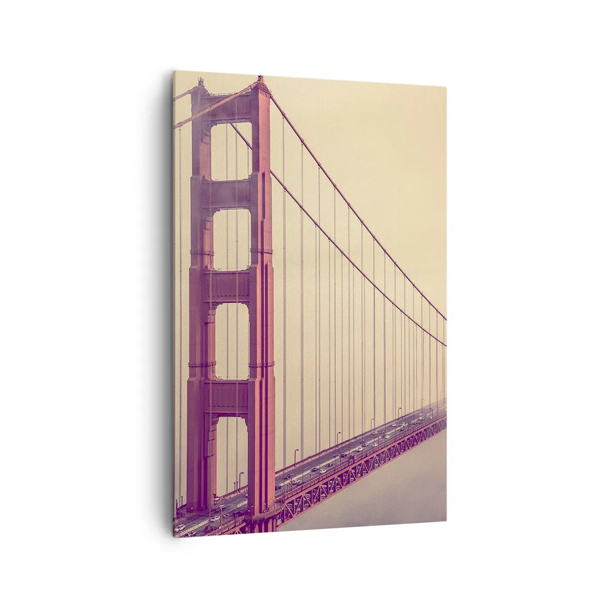 Quadro su tela - Stampe su Tela - Un ponte nella nebbia in tonalità pastello, simbolo di eleganza e pace - 80x120cm - Tra il cielo e la terra - Decorazione murale moderna per soggiorno e camera da letto ARTTOR