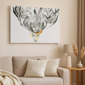 Quadro su tela - Stampe su Tela - Sottile grafica di cervo con corna decorative - 80x120cm - I corni dell'abbondanza - Decorazione murale moderna per soggiorno e camera da letto ARTTOR