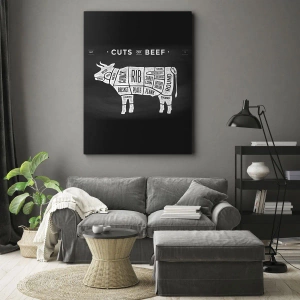 Quadro su tela - Stampe su Tela - Diagramma dei tagli di carne bovina su sfondo nero - 80x120cm - Il sillabario del macellaio - Decorazione murale moderna per soggiorno e camera da letto ARTTOR