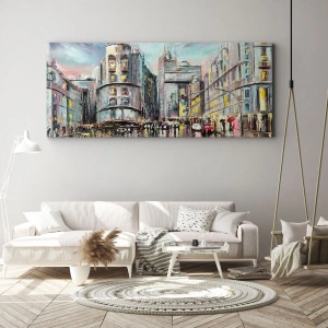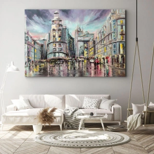 Quadro su tela - Stampe su Tela - Vista serale della città con riflessi sulla strada bagnata - 50x70cm - Sarà una serata riuscita - Decorazione murale moderna per soggiorno e camera da letto ARTTOR
