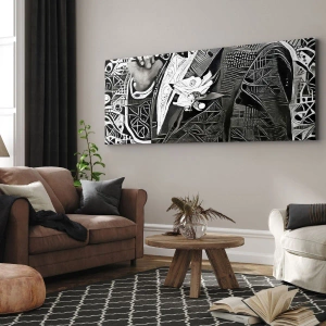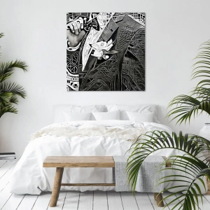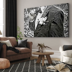Quadro su tela - Stampe su Tela - Elegante astrazione di un uomo in abito in bianco e nero - 50x70cm - Solo in apparenza un uomo grigio - Decorazione murale moderna per soggiorno e camera da letto ARTTOR