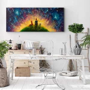 Quadro su tela - Stampe su Tela - Figure su una collina verde circondata da un cielo stellato - 50x70cm - Amore e amicizia: l'intero mondo - Decorazione murale moderna per soggiorno e camera da letto ARTTOR