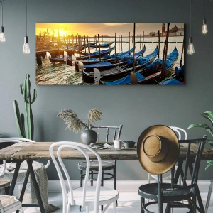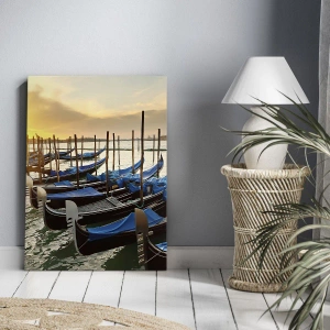 Quadro su tela - Stampe su Tela - Gondole a Venezia al mattino alla luce del sole nascente - 50x70cm - Prima che arrivi il frastuono - Decorazione murale moderna per soggiorno e camera da letto ARTTOR