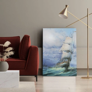 Quadro su tela - Stampe su Tela - Una nave in un mare in tempesta - 50x70cm - Con il vento in favore - Decorazione murale moderna per soggiorno e camera da letto ARTTOR