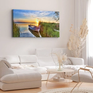 Quadro su tela - Stampe su Tela - Una barca in una baia tranquilla al tramonto - 80x120cm - L'insenatura dei sogni realizzati - Decorazione murale moderna per soggiorno e camera da letto ARTTOR