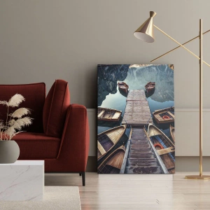 Quadro su tela - Stampe su Tela - Barche di legno su un molo su un lago di montagna - 50x70cm - Aspetto sul molo - Decorazione murale moderna per soggiorno e camera da letto ARTTOR