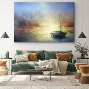 Quadro su tela - Stampe su Tela - Uno yacht su un mare calmo al tramonto - 80x120cm - Nella baia dorata - Decorazione murale moderna per soggiorno e camera da letto ARTTOR