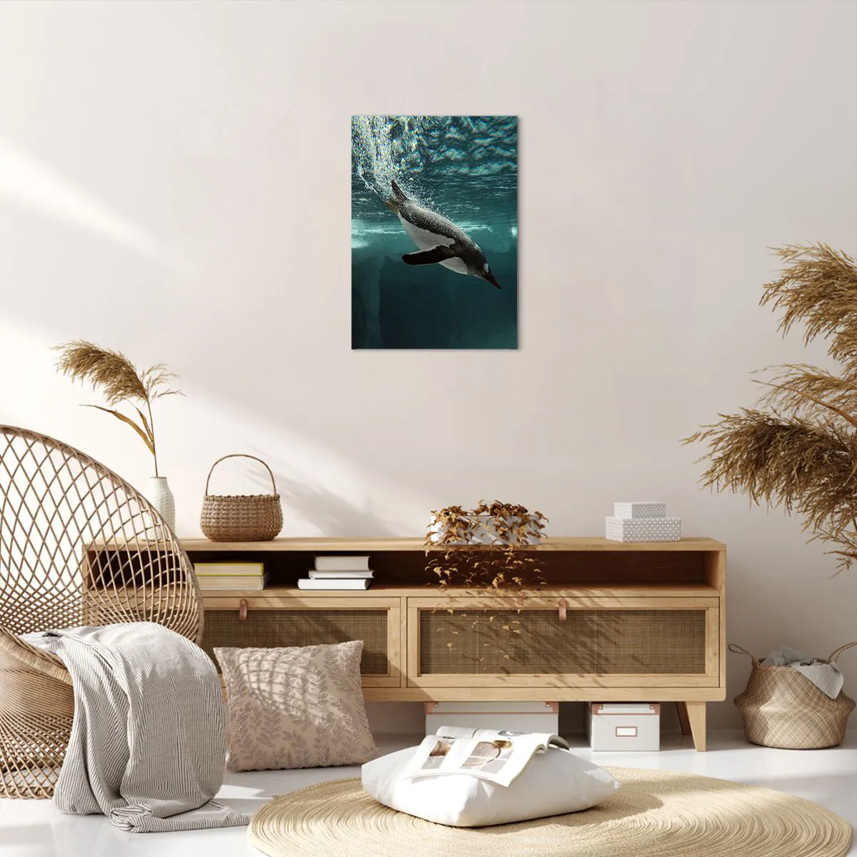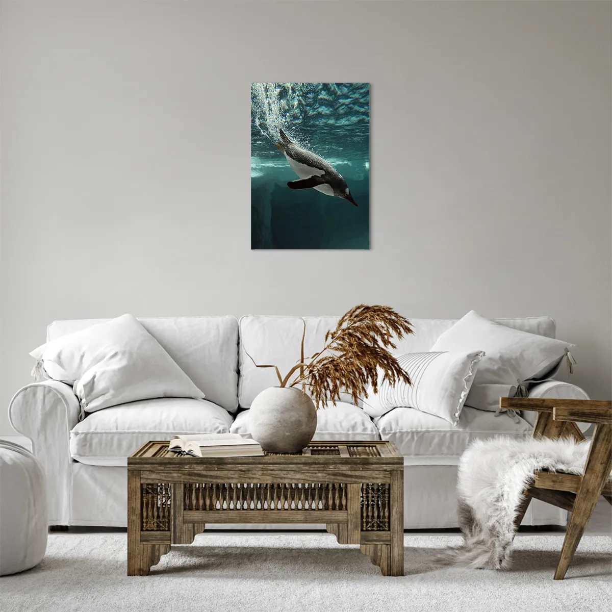 Quadro su tela - Stampe su Tela - Un pinguino che si tuffa nelle profondità dell'acqua ghiacciata - 50x70cm - Benvenuto nel mio mondo - Decorazione murale moderna per soggiorno e camera da letto ARTTOR