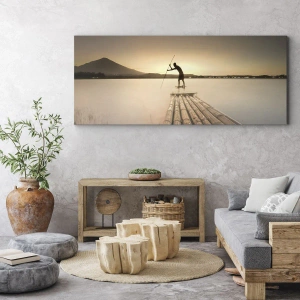 Quadro su tela - Stampe su Tela - Uomo su una zattera al tramonto - 50x70cm - Prima del riposo - Decorazione murale moderna per soggiorno e camera da letto ARTTOR