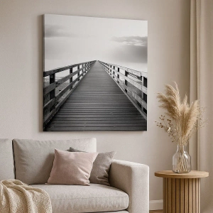 Quadro su tela - Stampe su Tela - Un'immagine in bianco e nero di un molo di legno che conduce verso l'orizzonte. - 50x70cm - Sempre più lontano - Decorazione murale moderna per soggiorno e camera da letto ARTTOR