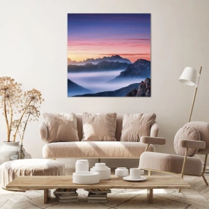 Quadro su tela - Stampe su Tela - Paesaggio montano all'alba con nebbia nelle valli - 80x120cm - Sopra le valli - Decorazione murale moderna per soggiorno e camera da letto ARTTOR