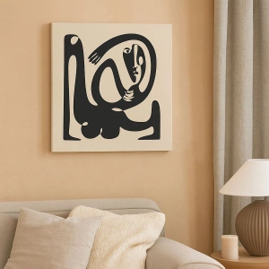 Quadro su tela - Stampe su Tela - Una figura astratta in nero su uno sfondo beige - 70x100cm - Quasi Picasso - Decorazione murale moderna per soggiorno e camera da letto ARTTOR