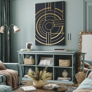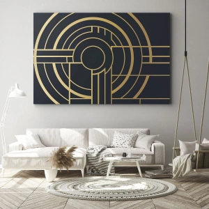 Quadro su tela - Stampe su Tela - Motivo geometrico con linee dorate - 50x70cm - Il giro delle cose - Decorazione murale moderna per soggiorno e camera da letto ARTTOR