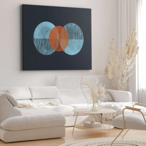 Quadro su tela - Stampe su Tela - Cerchi geometrici nei toni del blu e dell'arancione - 80x120cm - Composizione simmetrica - Decorazione murale moderna per soggiorno e camera da letto ARTTOR