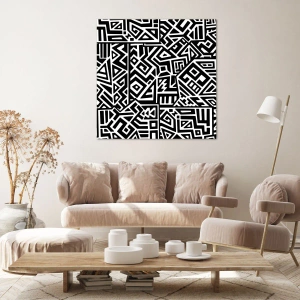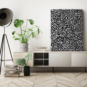 Quadro su tela - Stampe su Tela - Motivi geometrici in bianco e nero ispirati alla cultura precolombiana - 70x100cm - Composizione precolombiana - Decorazione murale moderna per soggiorno e camera da letto ARTTOR