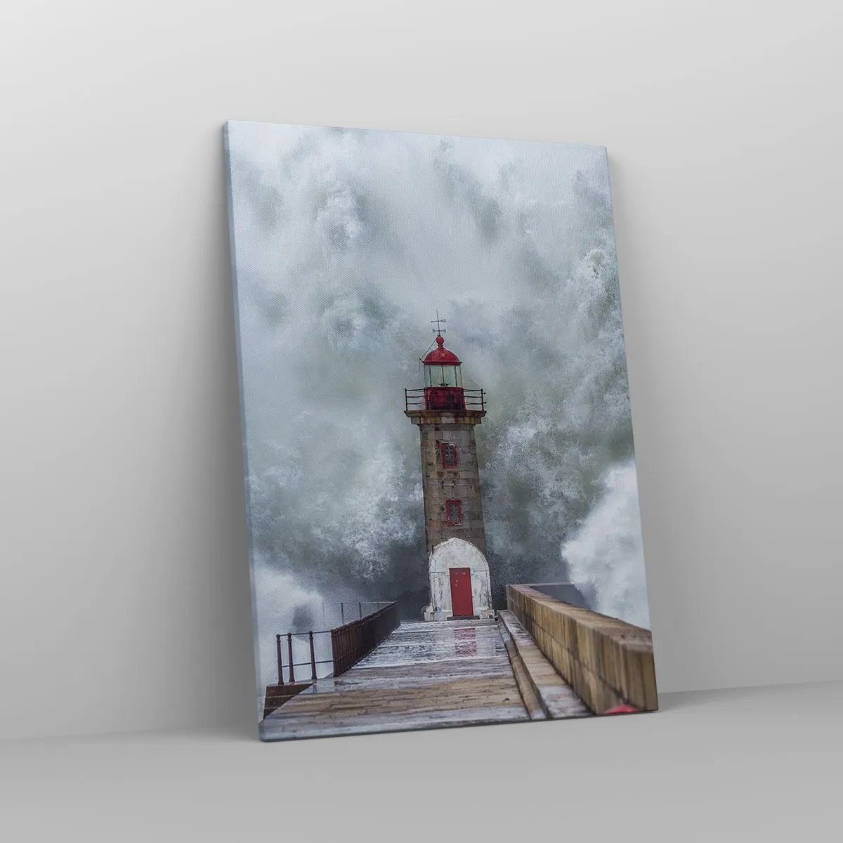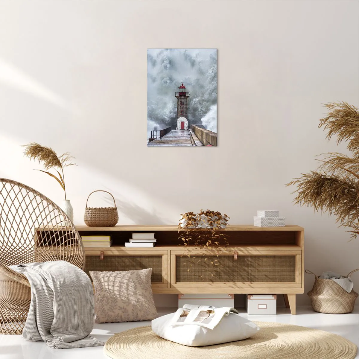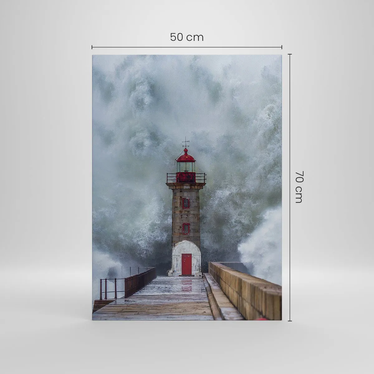 Quadro su tela - Stampe su Tela - Un faro circondato da onde agitate - 50x70cm - Fragore delle acque, rumore di tempesta - Decorazione murale moderna per soggiorno e camera da letto ARTTOR