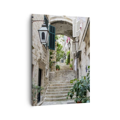 Anche i bordi sono stampati e creano un prolungamento del quadro. La tela è tesa sul telaio. Il quadro è pronto per essere appeso sulla parete. Ogni prodotto possiede un punto di sospensione fissato al telaio e un completo di montaggio (vite + tassello).