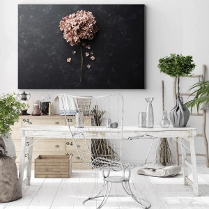 Quadro su tela - Stampe su Tela - Un delicato fiore di ortensia su uno sfondo scuro - 120x50cm - Un vero segno romantico - Decorazione murale moderna per soggiorno e camera da letto ARTTOR