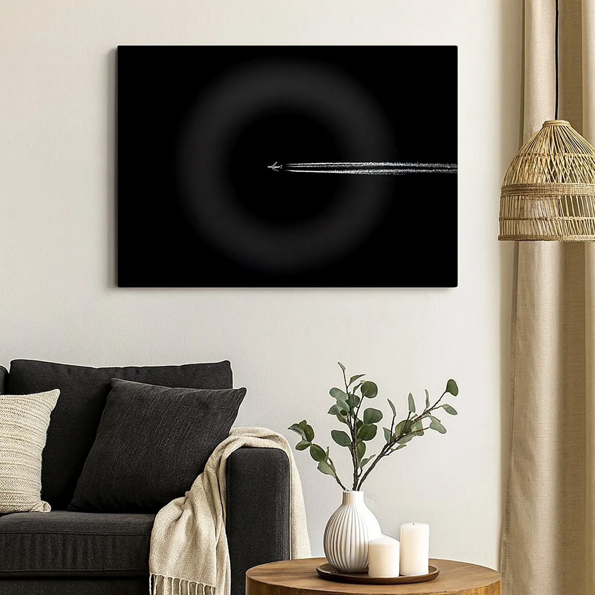 Quadro su tela - Stampe su Tela - Un aereo a reazione con una scia di condensazione visibile su uno sfondo nero - 120x80cm - In un'altra dimensione - Decorazione murale moderna per soggiorno e camera da letto ARTTOR
