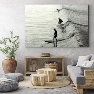 Quadro su tela - Stampe su Tela - Surfisti sulle onde in uno scatto monocromatico - 120x80cm - Onde all'incontro - Decorazione murale moderna per soggiorno e camera da letto ARTTOR
