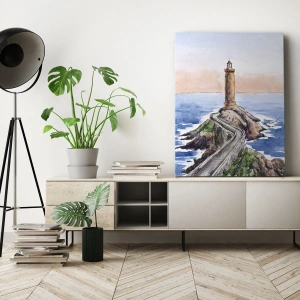 Quadro su tela - Stampe su Tela - Un faro su una costa rocciosa - 80x120cm - Rivolto verso il mare - Decorazione murale moderna per soggiorno e camera da letto ARTTOR